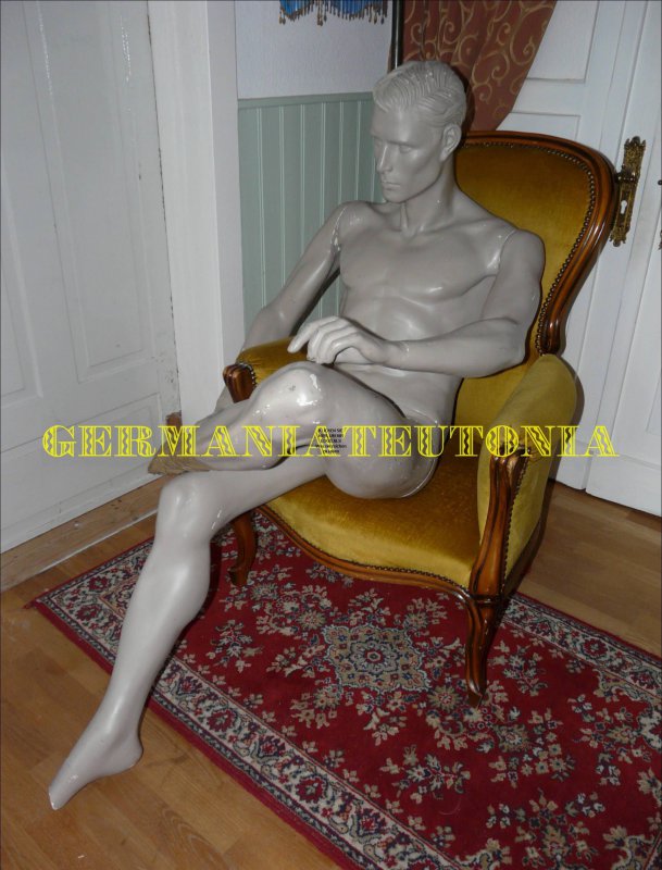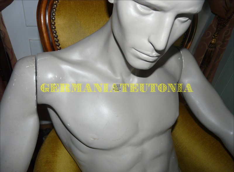 Ca. 180 cm, ideal für eine Uniform, sehr maskulin. Hatte eine Offiziers-Uniform auf dieser Puppe. Mit Alters- und Gebrauchsspuren. Siehe Foto´s! Kein Versand möglich!