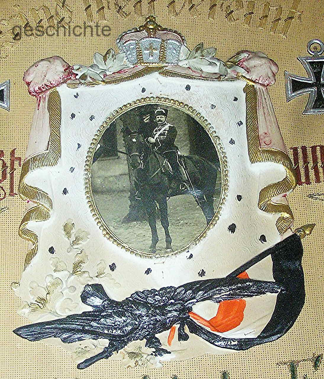 Sehr schönes aufwendiges Reservistenbild eines Husaren zu Pferde, um 1910 !!!